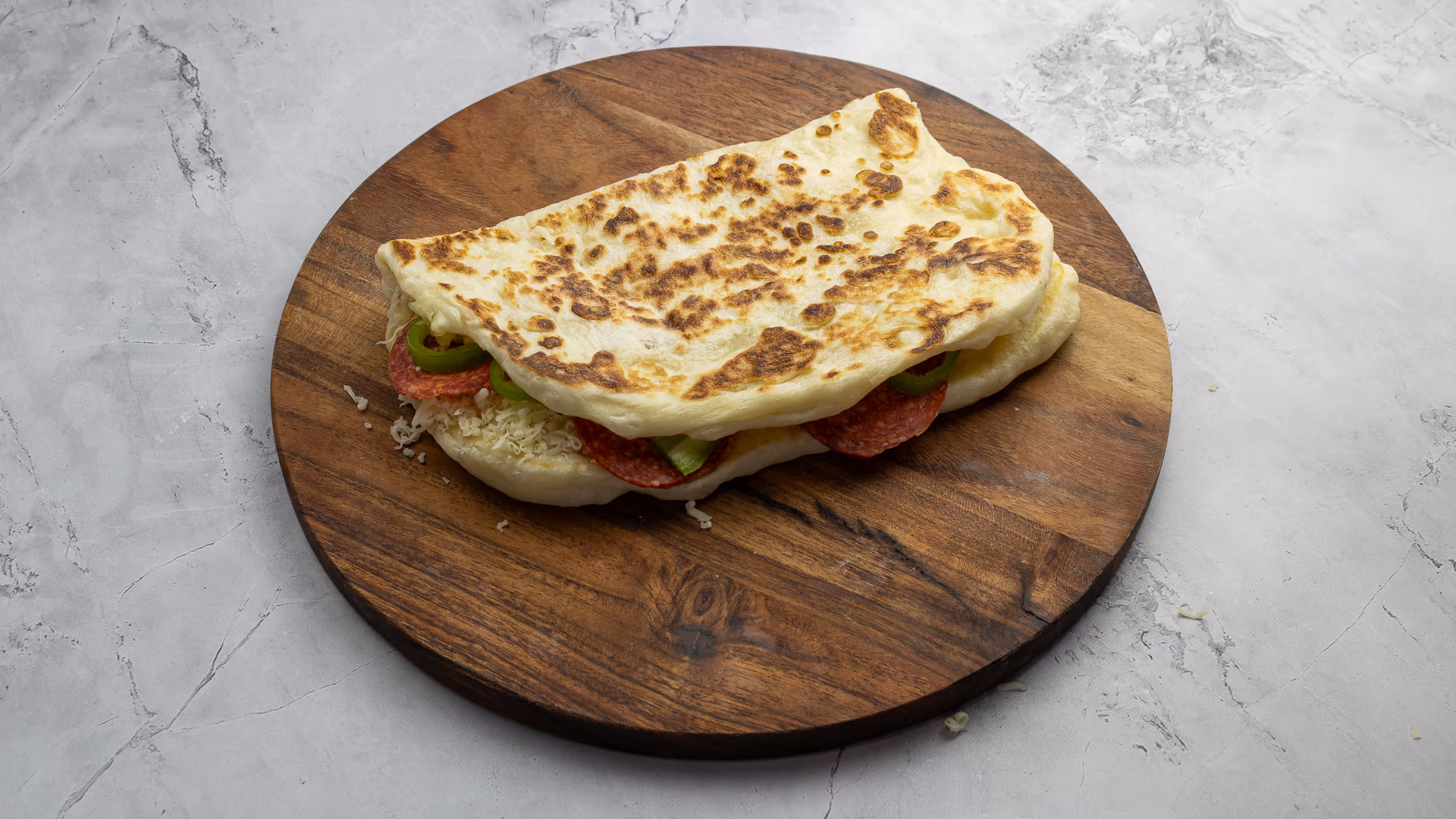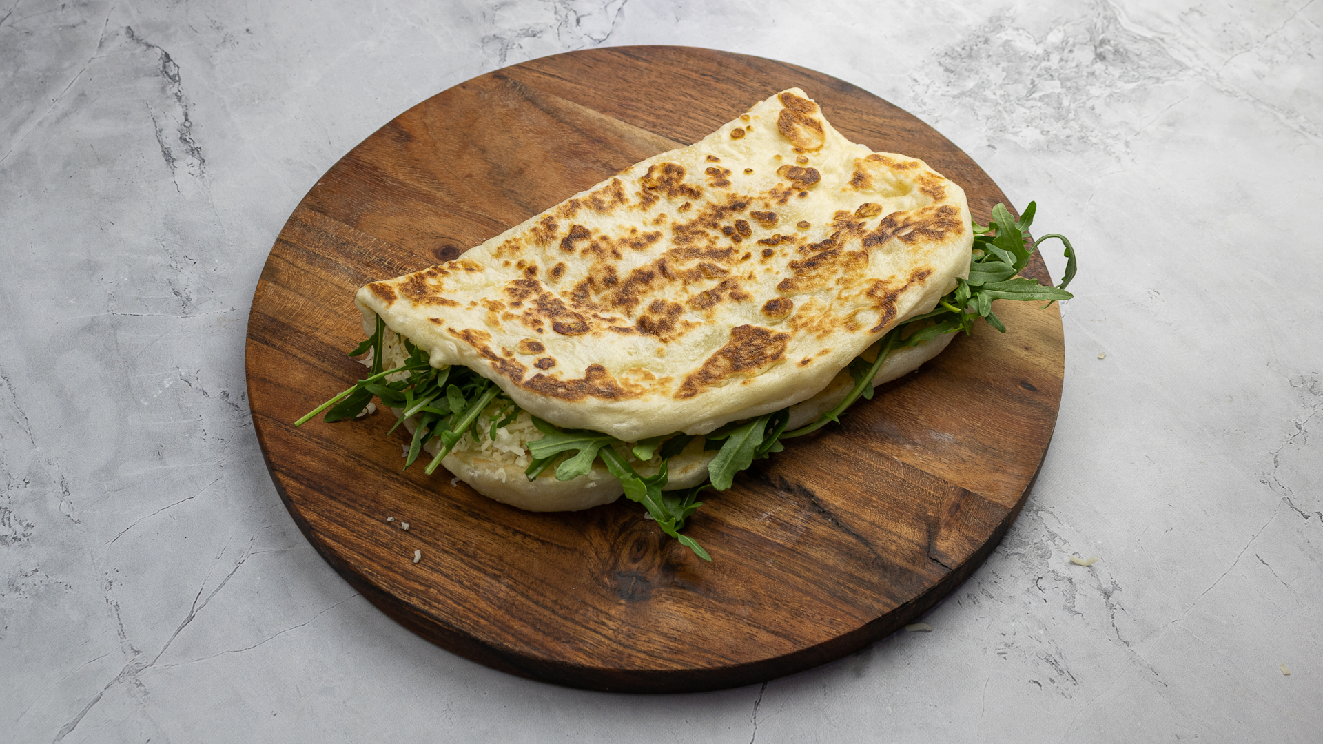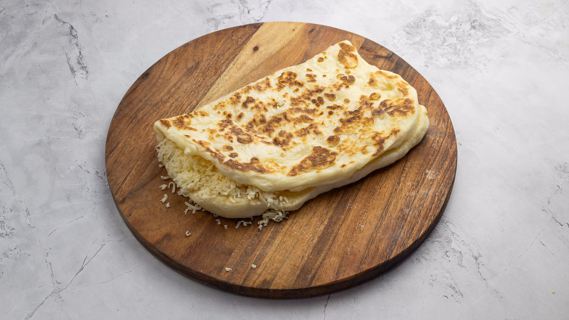 Lepény gazdagon megszórva reszelt sajttal. Vegetáriánus étrendet követők számára is tökéletesen alkalmas.